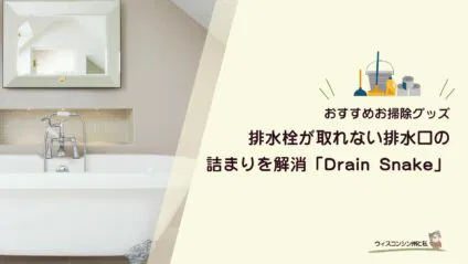 アメリカお掃除グッズおすすめ!排水口の掃除をしたいけれど、水栓が一体型で外せない…そんなお悩みを「Drain Snake」で解決!実際に使ってみた様子や、汚れをスッキリ取り出す3つのコツをブログで詳しく解説します。子供やペットがいても安心して使えます。