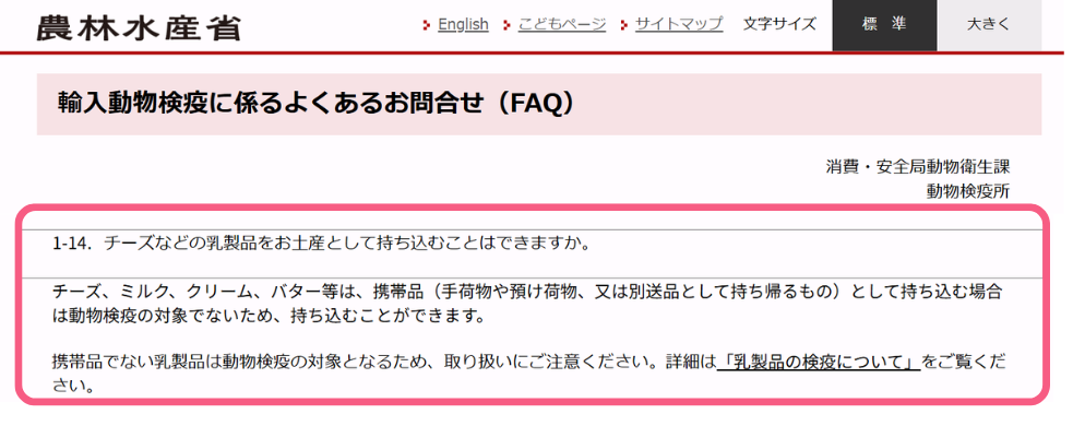 ・農林水産省動物検疫所Webサイト(乳製品の検疫について) https://www.maff.go.jp/aqs/topix/dairy_products.html
