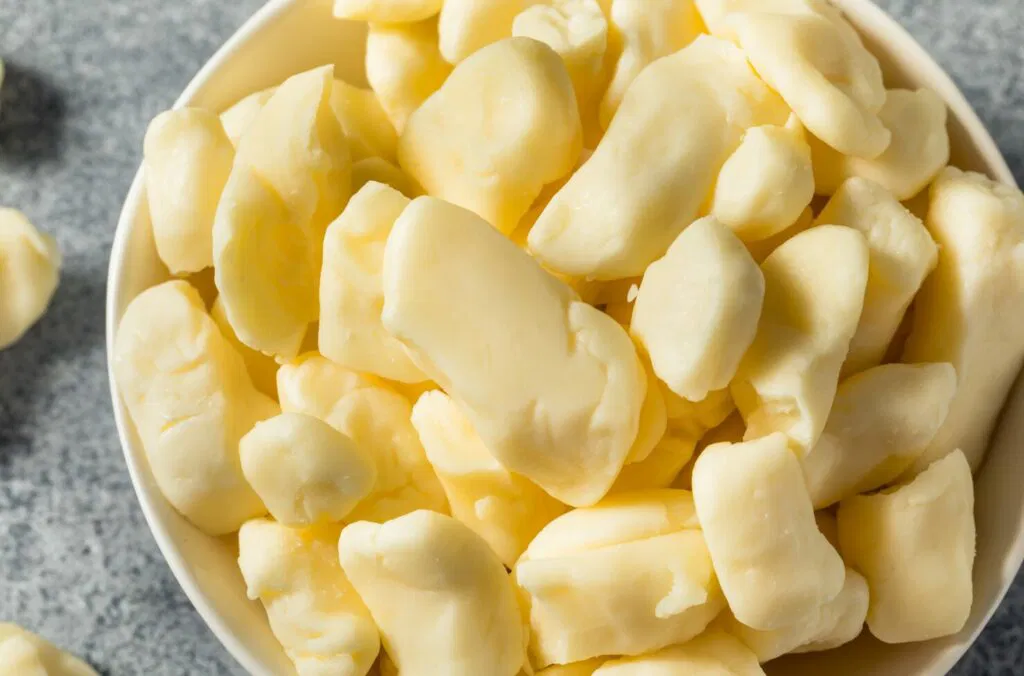 新鮮なチーズカードほど、嚙んだ時に「キュッキュッ」という音が鳴り、特徴的な弾力を感じることが出来ます。